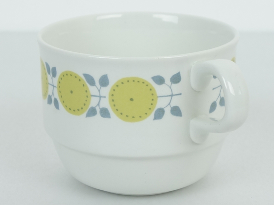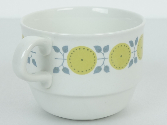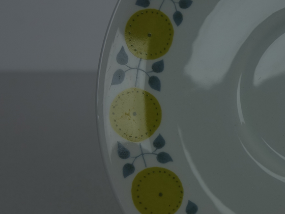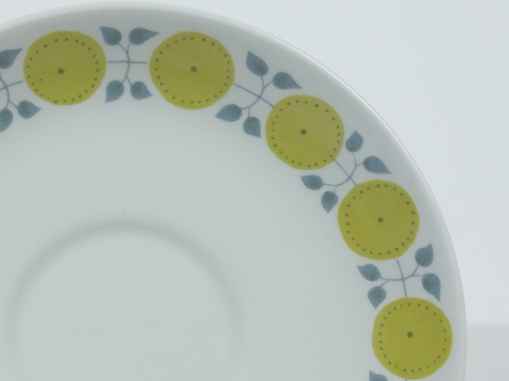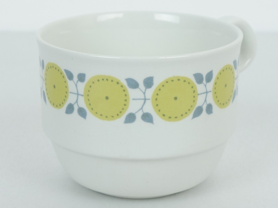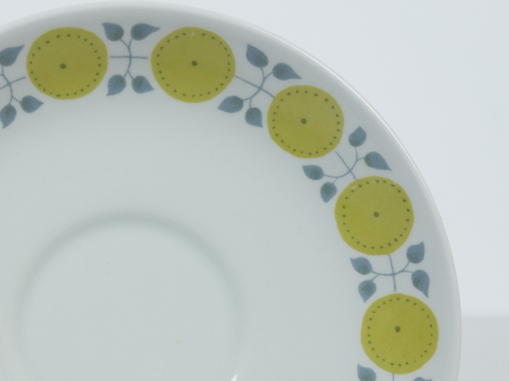 おそらく花がモチーフだと思うのですが、ちょっと暗めの黄色が当時のスウェーデンらしい色彩。レトロでかわいらしい表情です。