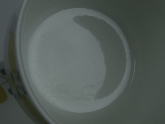 | コンディション: | カップ内底にザラザラしたものが付着しているのを考慮した価格。水あかなのか釉薬の不具合か不明ですが、落とせません。光を反射させなければ見えないものです。 ソーサー表面は中央とフチ近くに一周ぐるっと、モヤモヤしたものがありますが、光を反射させない限り見えません。 その他、カップ外側に微細な小傷、ソーサー表面に少しの小傷、ソーサーの模様にわずかなペイントロスなどがありますが、全体的には良好なヴィンテージコンディションです。 また、素材の特性上ごく微細な黒点があります。 |