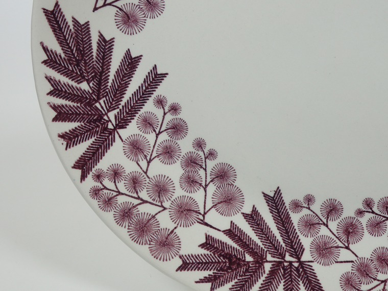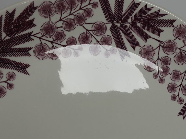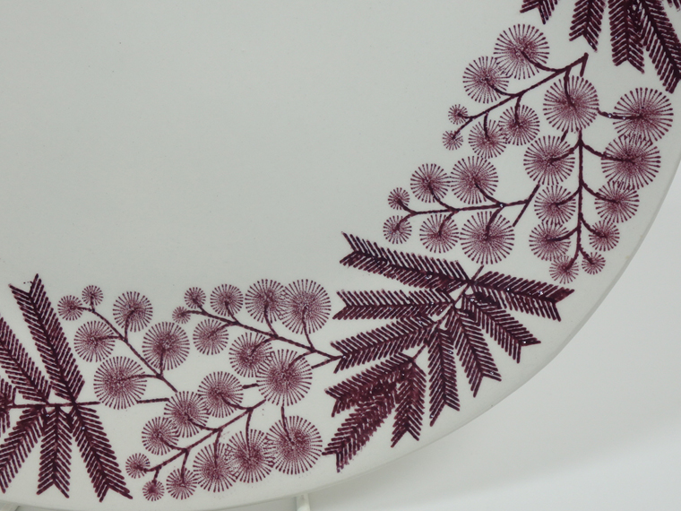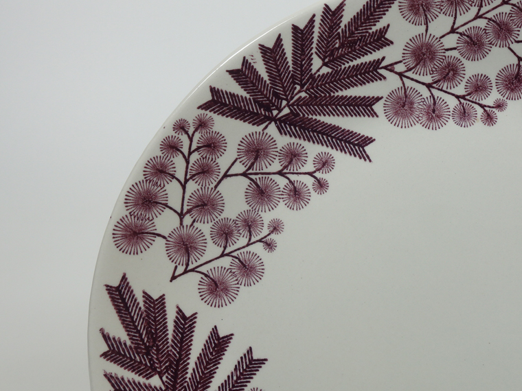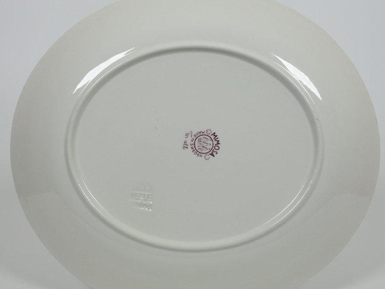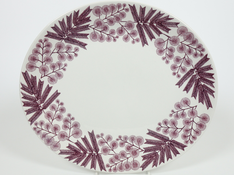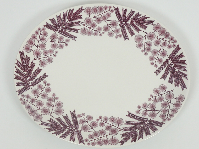 スウェーデン・Gefle社で1950年代の終わりにデザインされたMimosa/ミモザ、28×25cmのオーバルプレートです。