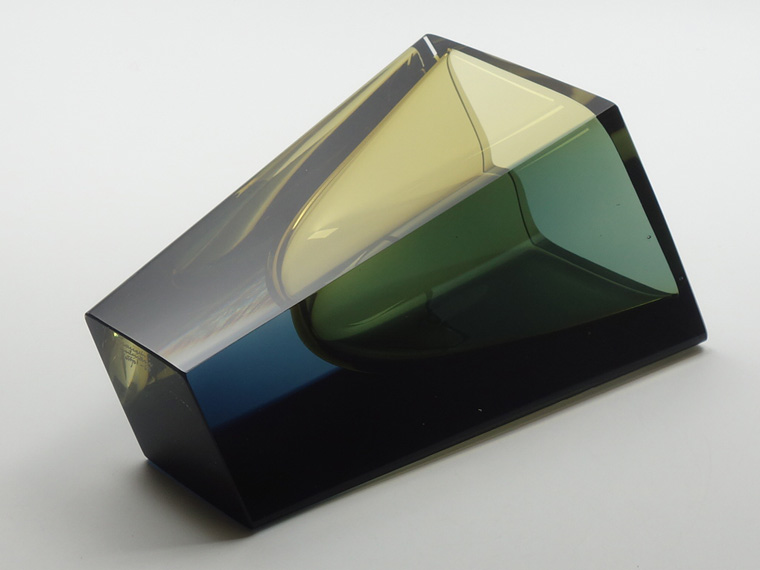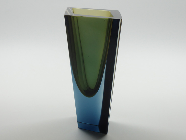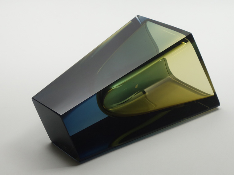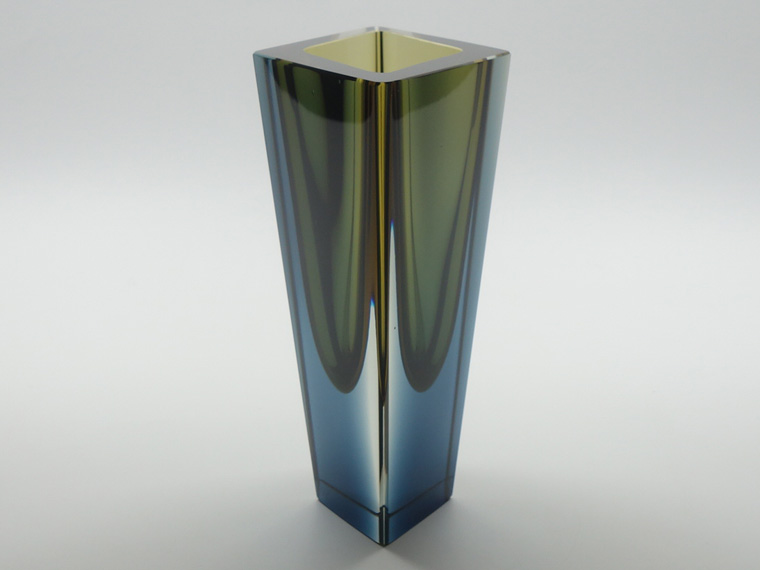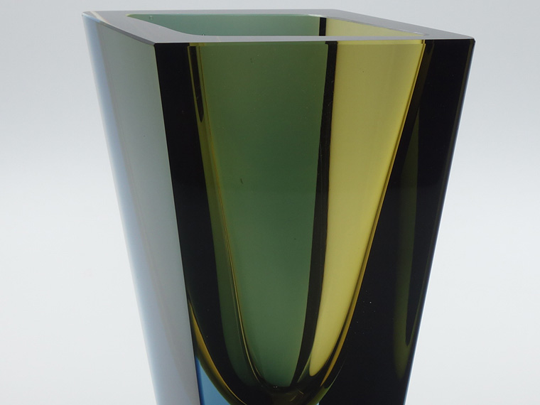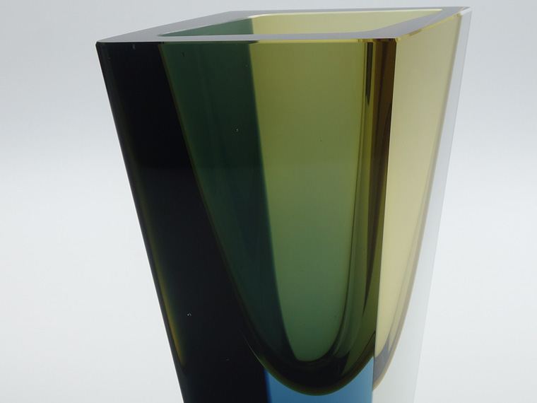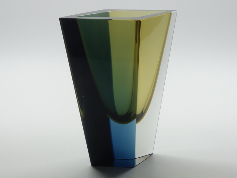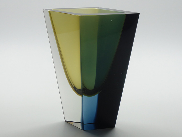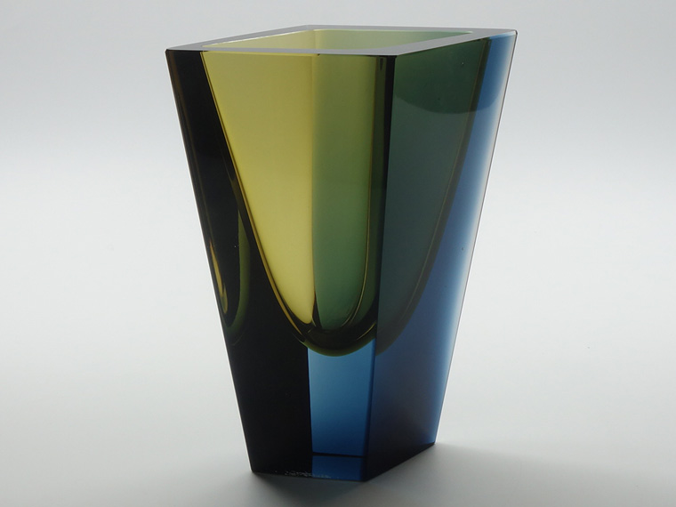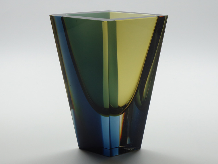 色は薄い色ガラスの層を重ねる"flashed glass"という技法によるもので、