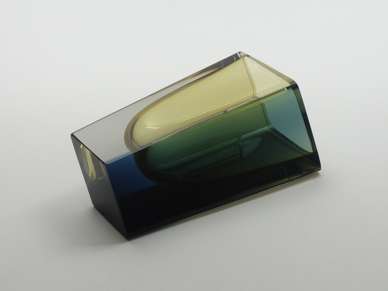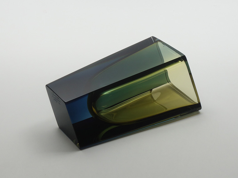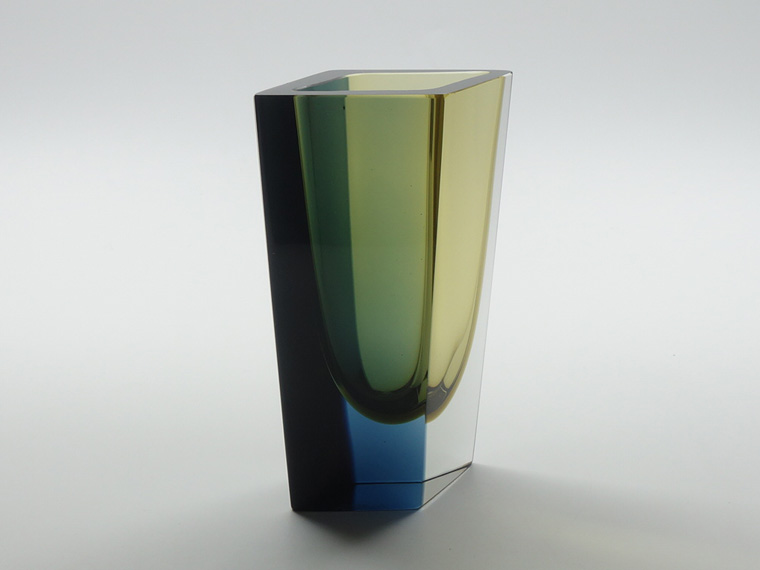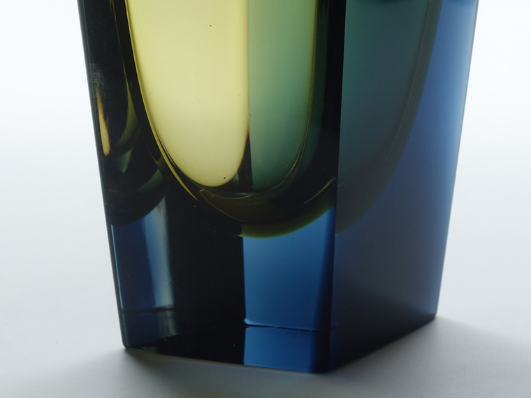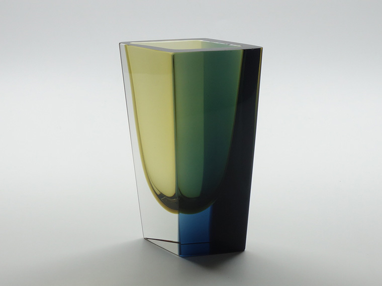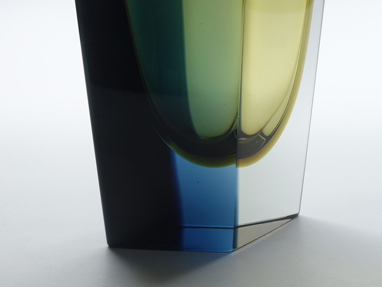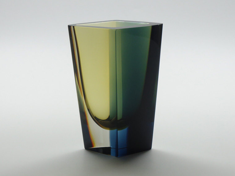 色は薄い色ガラスの層を重ねる"flashed glass"という技法によるもので、