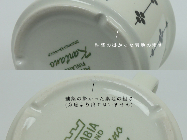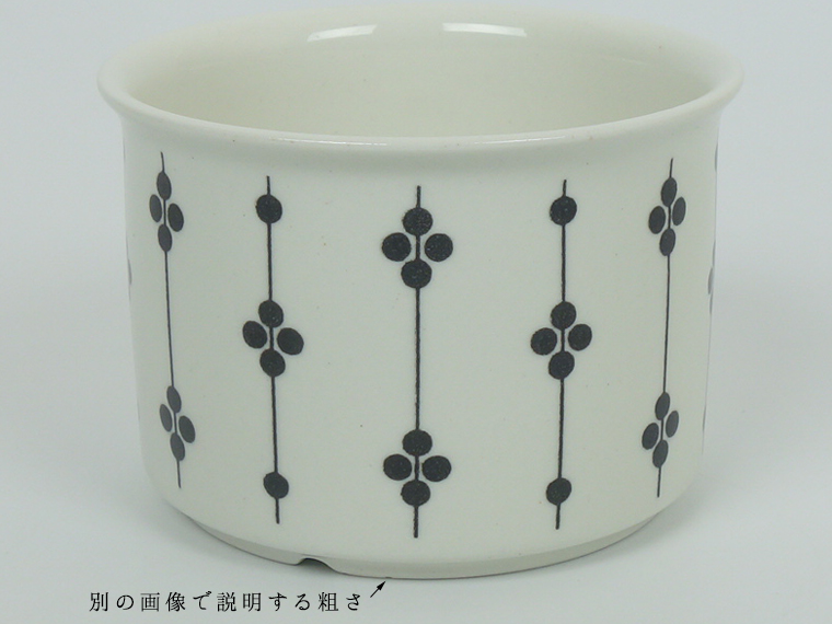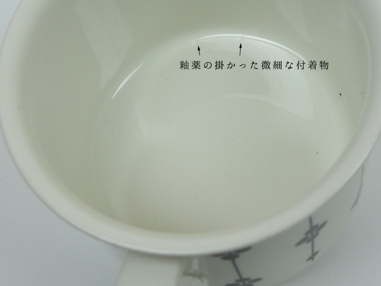 | 注意事項: | ※微細な点や付着物、気泡跡、素地や釉薬の粗さ、歪み、プリントの粗さなどが発生しやすいアイテムですが、全ての画像を用意したり説明したりしませんのでご了承ください。 ※とりわけ、このEHモデルはごく微細な点が多数発生するのが一般的です。 |