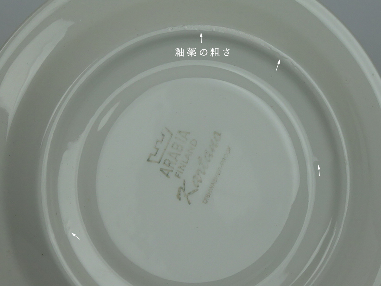 について、違いが大きいものは別の商品として掲載していますが、在庫が2以上の場合は1点1点微妙に風合いが異なることもございますので、北欧ヴィンテージ食器の特性としてご理解いただいた上でお買い求め下さい。※ヴィンテージ食器については、当店は食品衛生法が求める検査を行っておらず、「装飾品」としての輸入・販売となります。