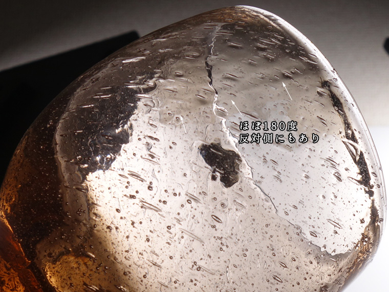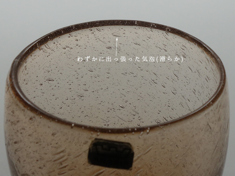あえてたくさんの気泡を残したガラスで作られていて、気泡の大きさや数などが個体によって様々に。