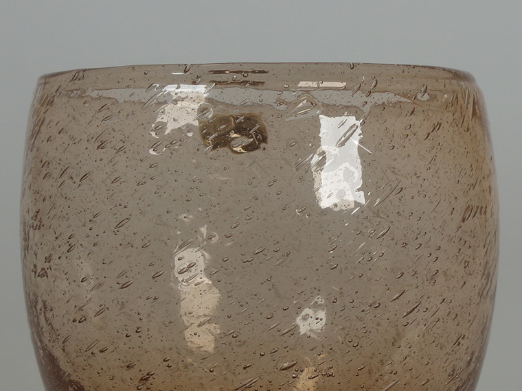 シェリー・ワイン・ビアグラスの脚付グラス3種、ボウル3種とパンチグラス、アッシュトレイ2種にキャンドルスティックなどアイテム数は多かったのですが、異物の混入や気泡のはじけなど課題が多く、わずか3年で製造が終了してしまいました。