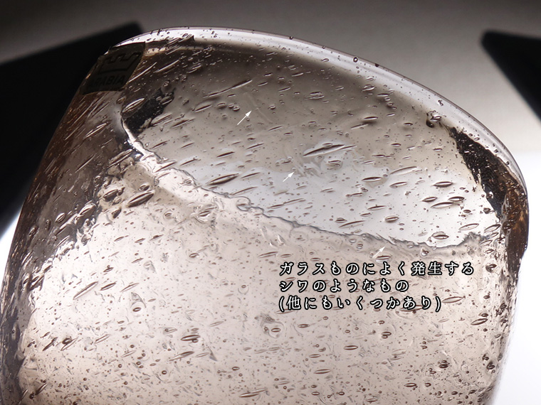 | 注意事項: | ※微細な気泡・異物の閉じ込め、ガラスのシワや粗さ、膨らみや凹み、歪みなどが発生しやすいシリーズです。全ての画像を用意したり説明したりしませんのでご了承ください。 ※気泡が表出することが多く、その部分は爪で引っ掻くとガリガリした感触になることがありますが、製造工程上発生しやすいもの。ひどくない限り価格への影響はありません。 ※カットサインが無いことがしばしばありますが、ARABIAのシールがあって作りに問題が無くてもカットサインが無いことがあるため、カットサインを入れていない期間があったのでしょう。カットサイン無し=B級品という意味では無いとご理解ください。 |