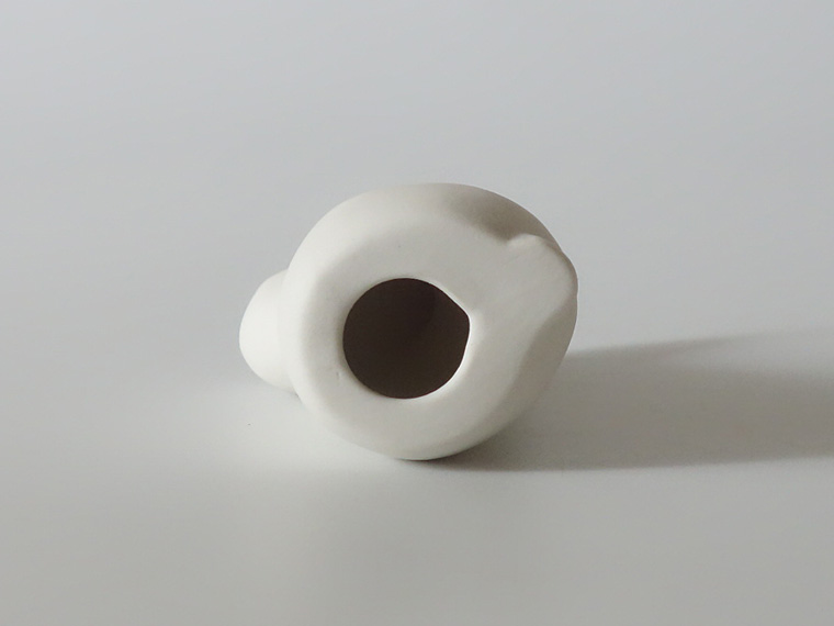 おそらく右半身と左半身を別の型で作って接着した後、薄く伸ばした陶土のようなもので塗ったのでしょう。