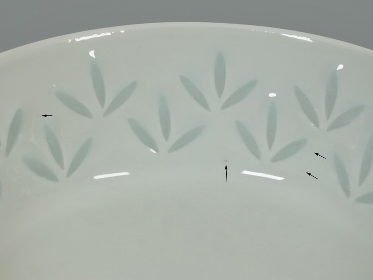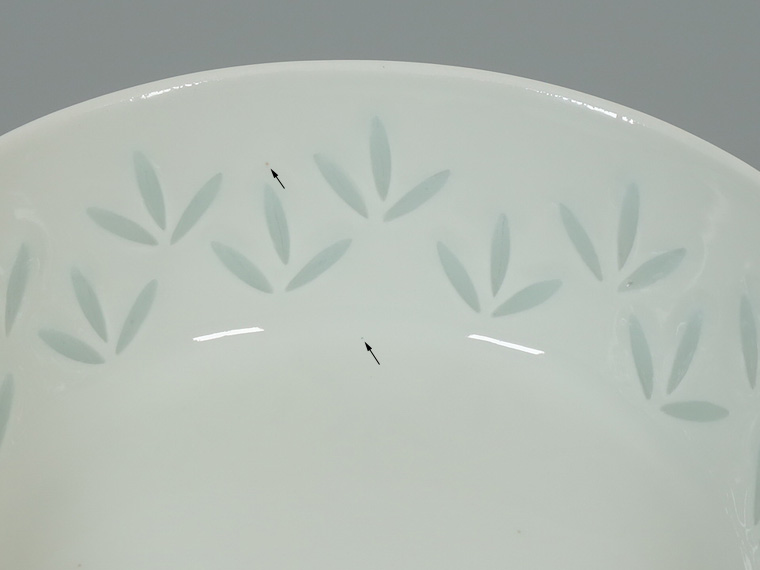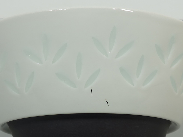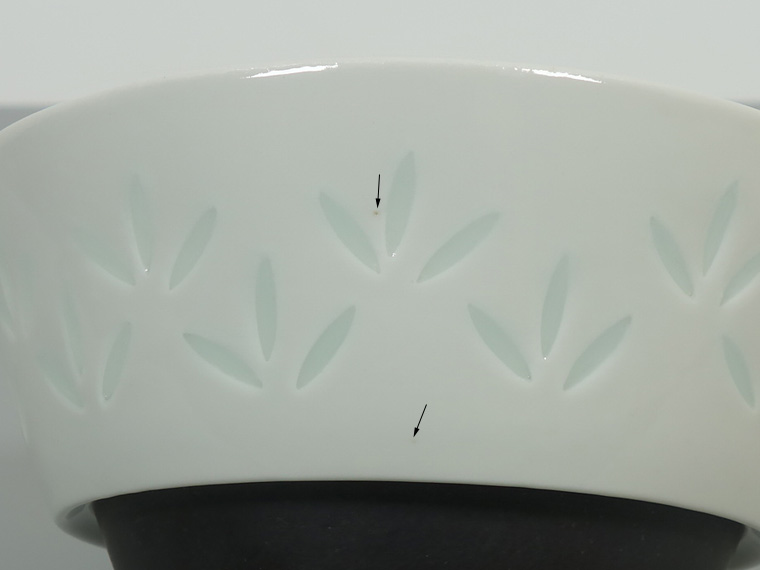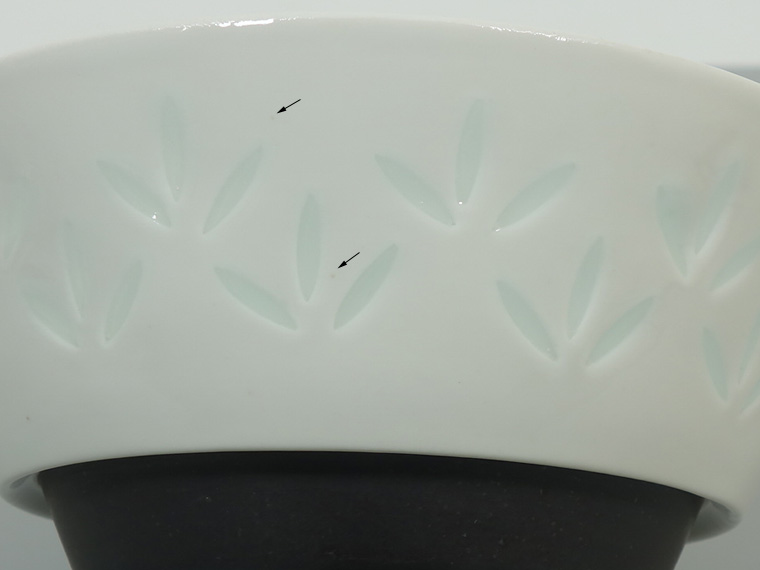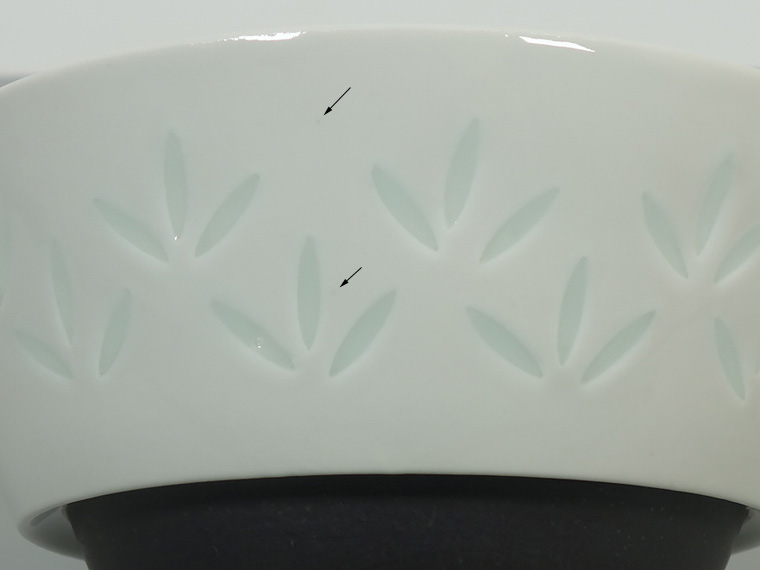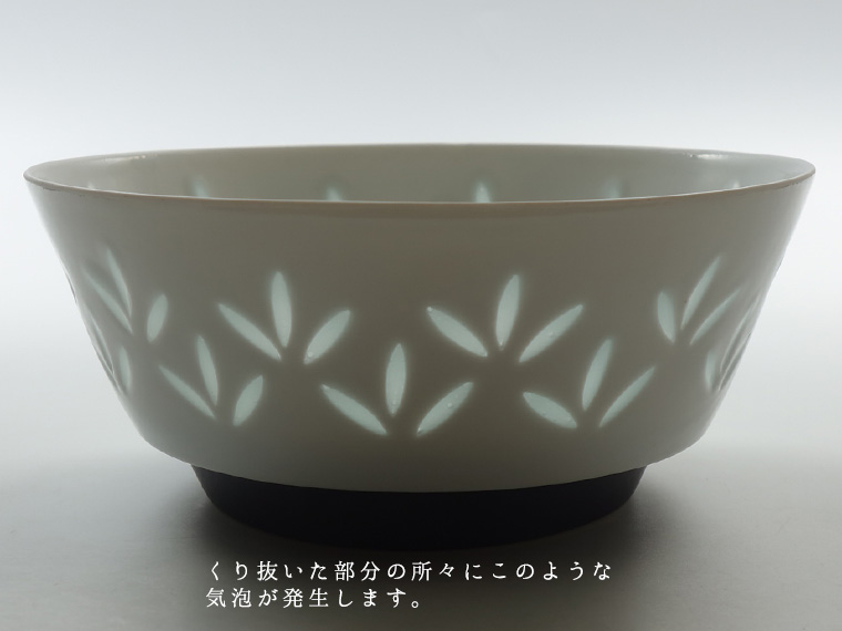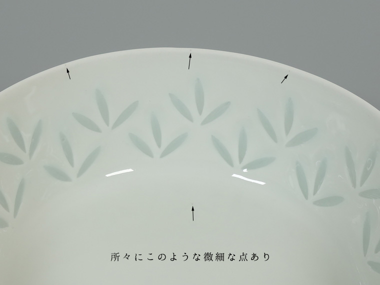 | 注意事項: | ※このシリーズは、透かし彫り部分に気泡が多く見られます。 ※微細な点や付着物、素地や釉薬の粗さ、気泡跡、歪みなどが発生しやすいですが、全ての画像を用意したり説明したりしませんのでご了承ください。 |