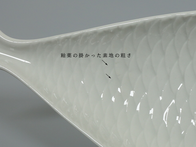 細かい鱗に軽い凹凸があることで色釉の濃淡が生まれ、立体感もあるのがポイント。