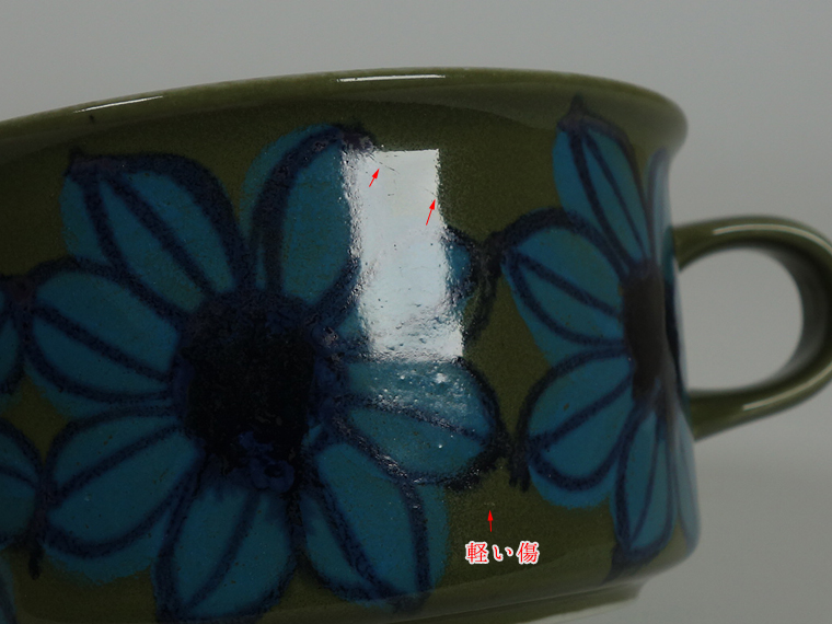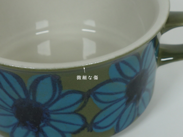 | コンディション: | 内底に軽い傷が少々、その他微細な目立たない傷がありますが、全体的に良好なヴィンテージコンディション。 細かい作りの粗さはあるものの、作りはきれいな方。 花の絵付けもきれいです。 | 注意事項: | ※微細な点や付着物、気泡跡、素地や釉薬の粗さ、歪み、色ムラなどが発生しやすいアイテムですが、全ての画像を用意したり説明したりしませんのでご了承ください。 |