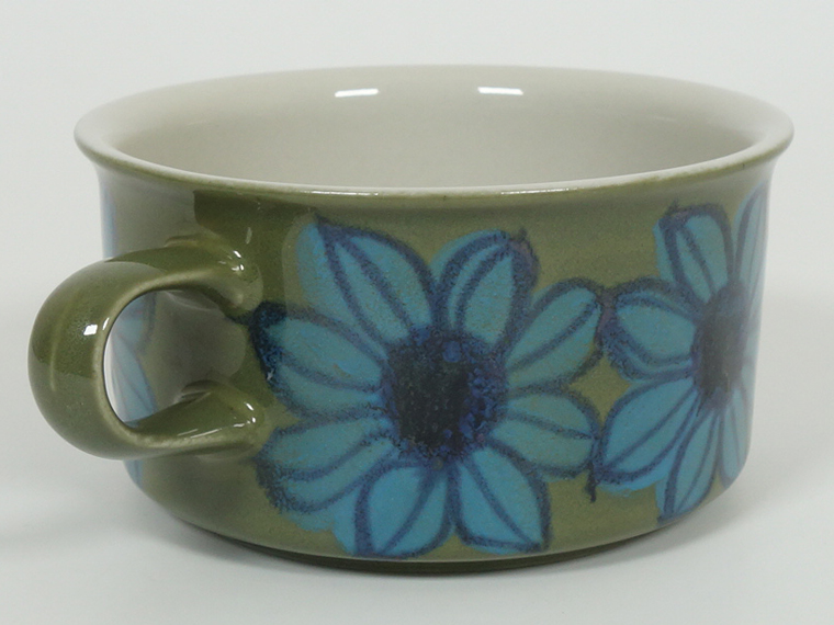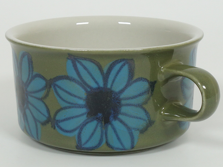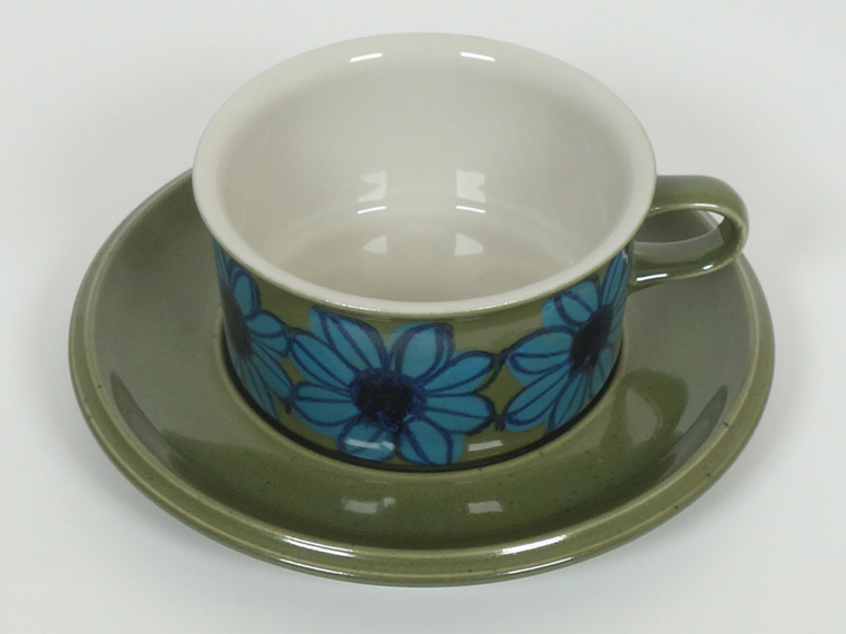 【お取り置き品】ARABIA/アラビア HLA ティーカップ&ソーサー オリーブグリーン×ホワイト(水色の花) 006