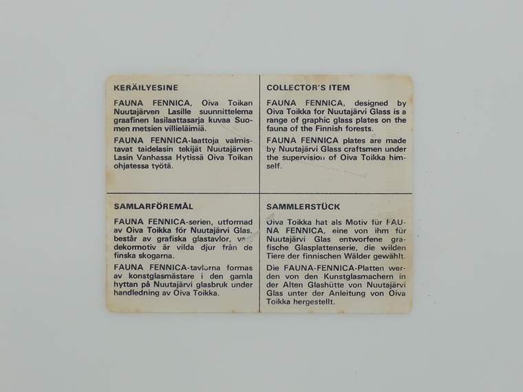 Oiva ToikkaがデザインしたFauna Fennica/ファウナ フェンニカのウォールプレート。