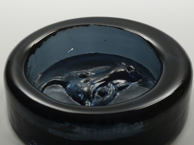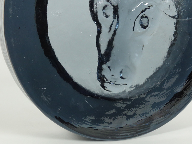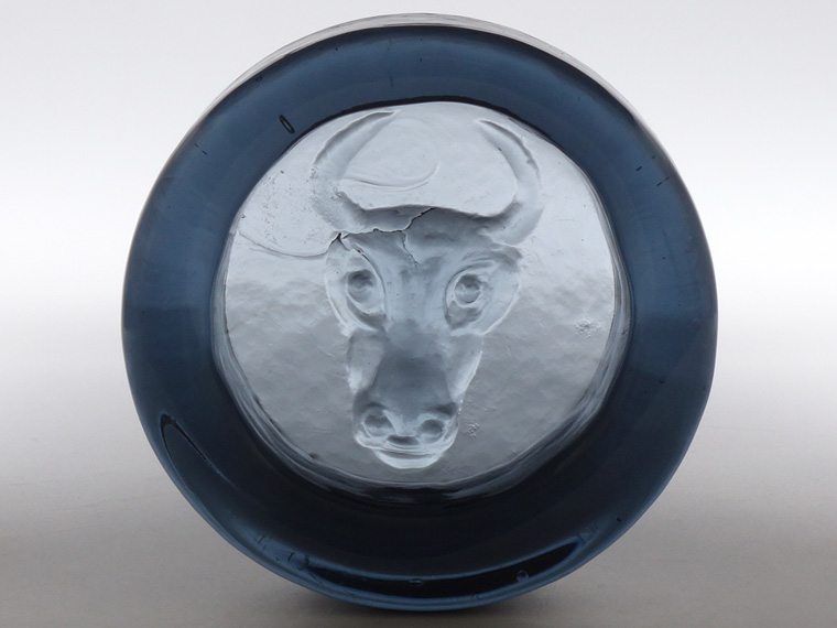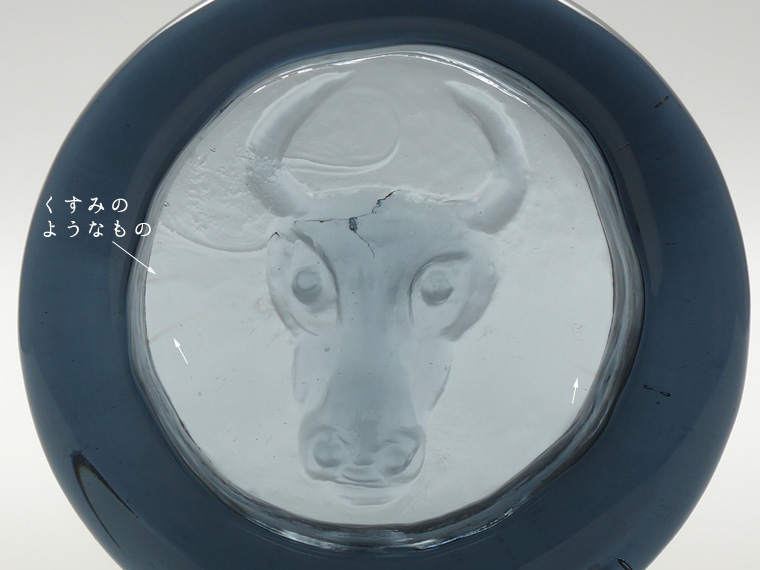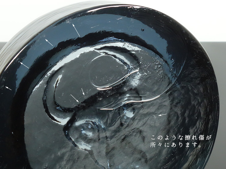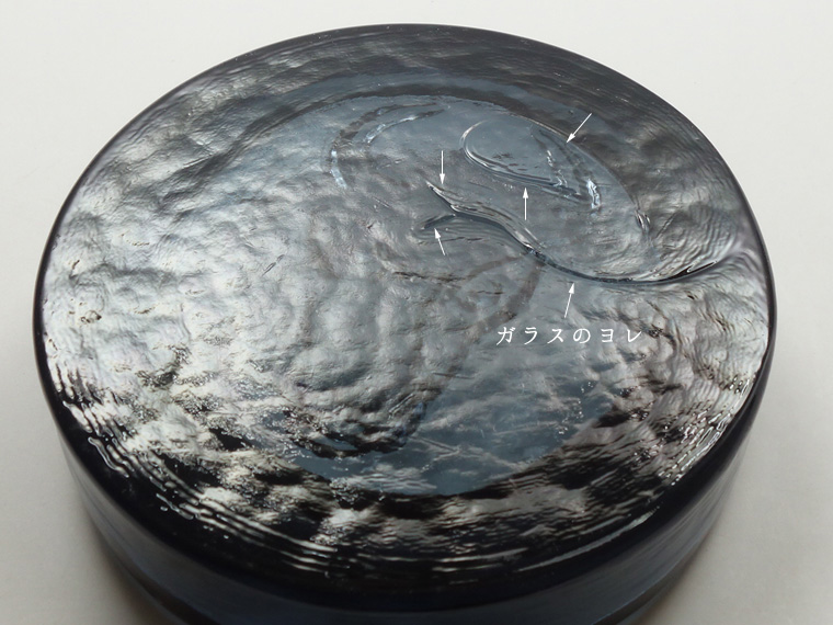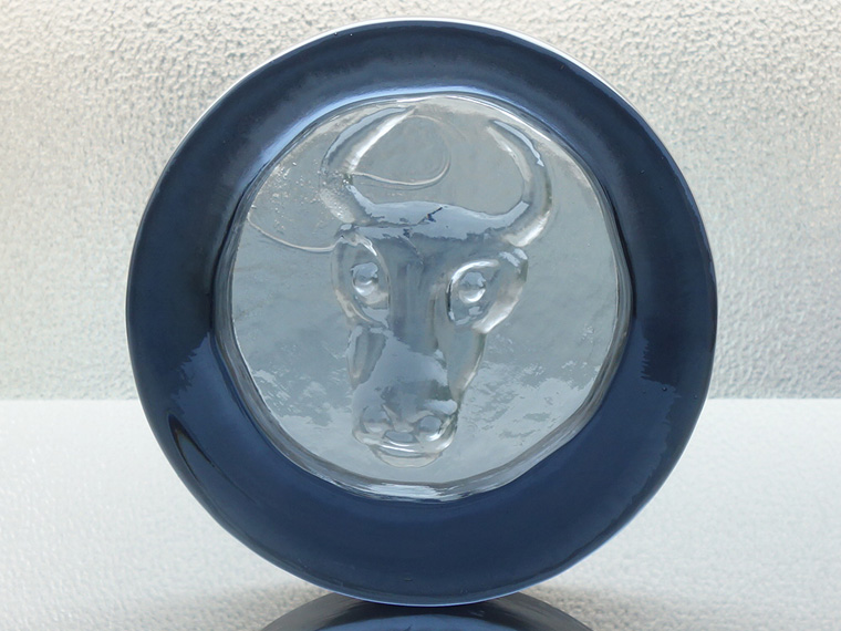 型に入れたガラスにモチーフを押し当てて製作したもので、ガラスの厚みや盛り上がり・モチーフの位置などがそれぞれ異なります。