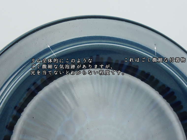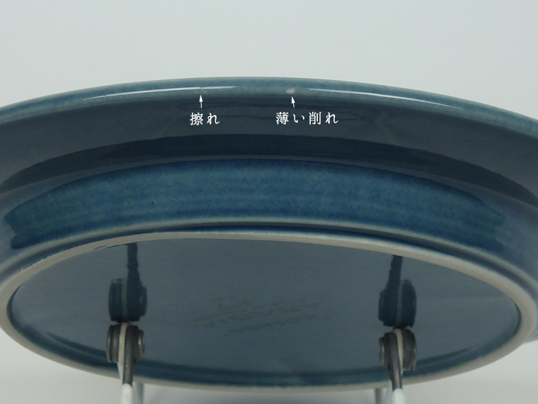 糸底に成形ミスがあるので置いた時に一部が浮く状態にはなります。 強く押すと沈むものの、少し触ったくらいでがたつくという程ではありません。 表面に多少の傷がありますが、全体的に良好なヴィンテージコンディションです。 | |