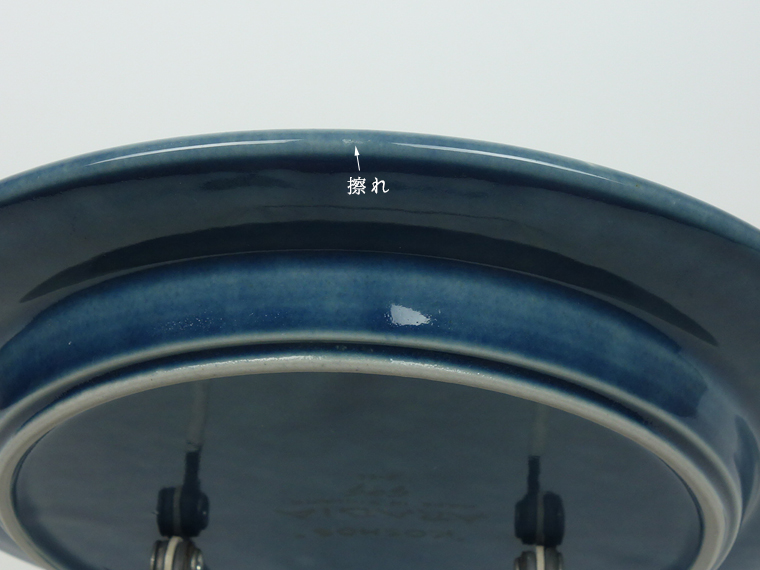 歪みが大きいのを考慮した価格。 真横より少し高い角度でもわかるくらいです。 糸底も少し歪んでいるので少しがたつきはあります。 表面に多少の傷がありますが、全体的に良好なヴィンテージコンディションです。 | |