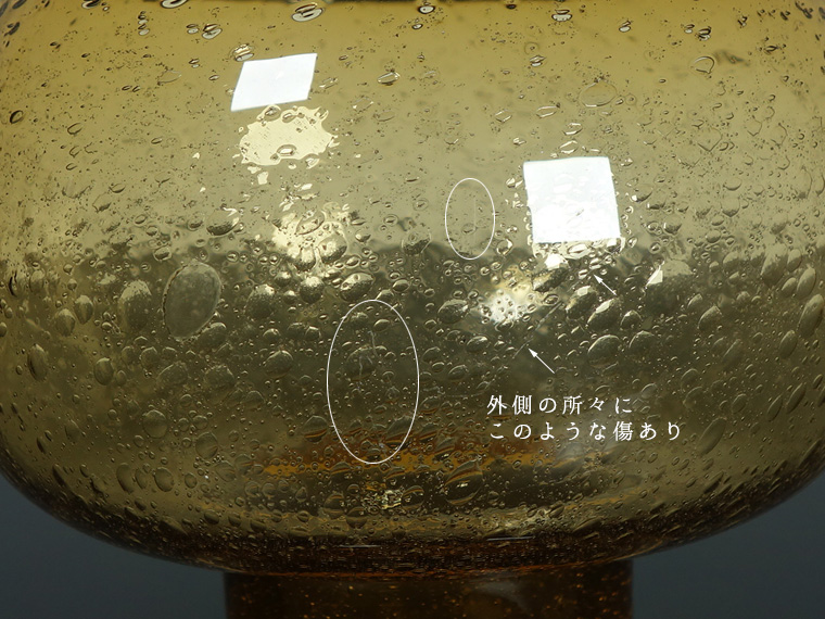 | 注意事項: | ※気泡の表出や破れ、異物の閉じ込め、ガラスのシワ、上部の傾き、底面の歪み、汚れや微細な傷などが発生しやすいですが、全ての画像を用意したり説明したりしませんのでご了承ください。 |