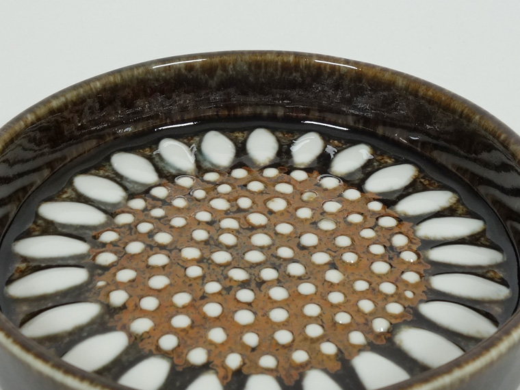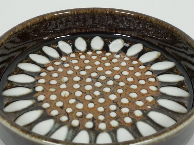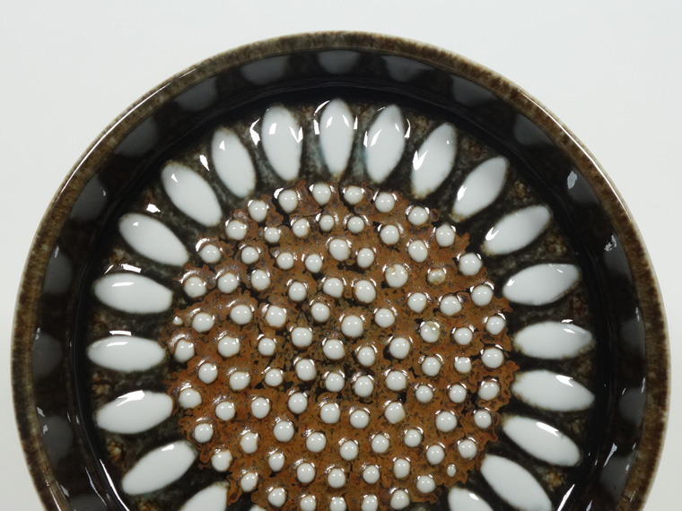 1960年からRörstrand社のアトリエで制作されたもので、立体的な花は彼女のアトリエ作品に特徴的な造形。
