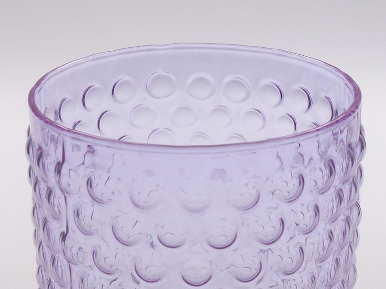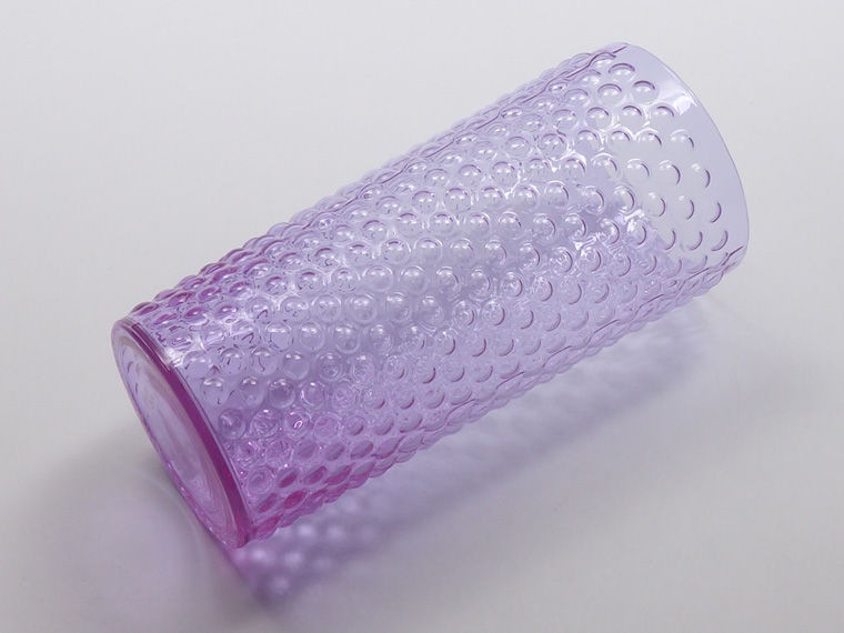 アメジストは、ネオジウムという金属をガラスに混ぜることで自然光や白熱灯ではピンクに近い紫色、蛍光灯では水色に変化して見える色。