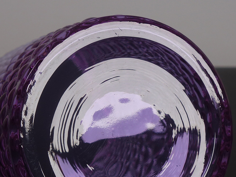 厚手で底はガラスの塊のずっしりとしたタイプも作られましたが、こちらはFloraのようなやや薄手のガラスで内側にもしっかり凹凸がある作り。