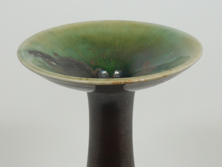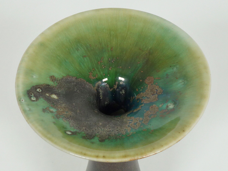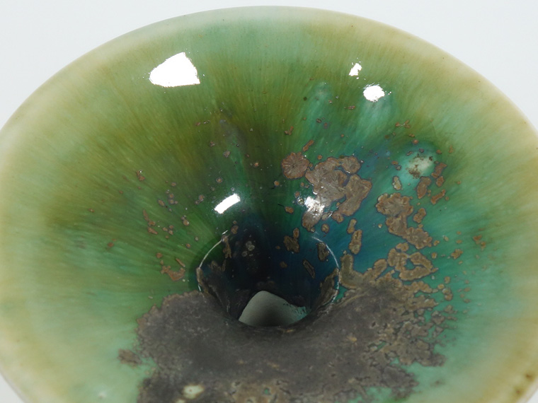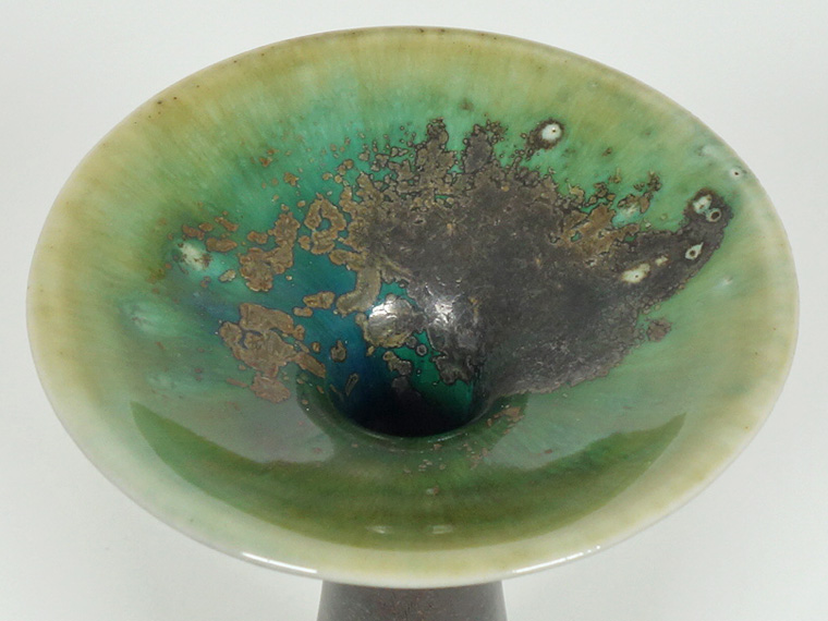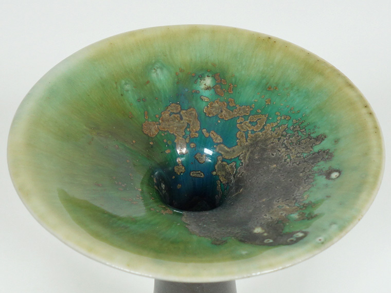 彼女の他の作品同様、上部の複雑な色合いが非常に美しく、金属釉のようなものが無造作に掛けられているのも見どころです。