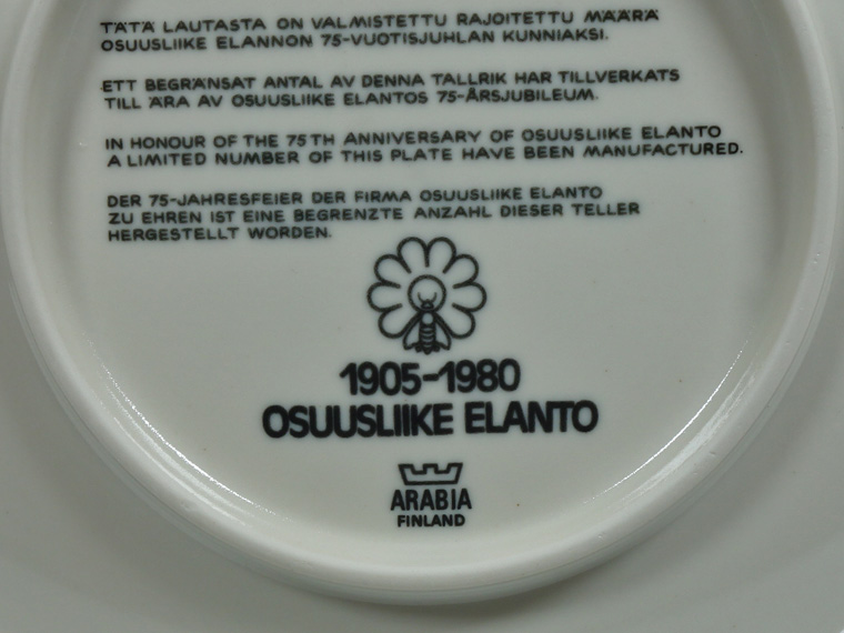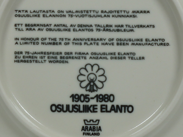 ARABIA/アラビア OSUUSLIIKE ELANTO 75周年 ウォールプレート 010
