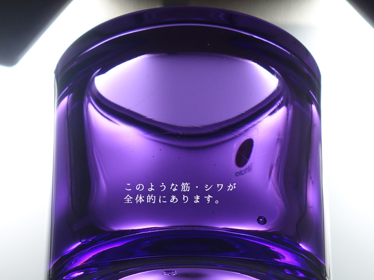 | コンディション: | 上部に微細な傷・軽い傷が多めなのを考慮した価格。飾った時に目に付くほどではありません。 全体的には良好なヴィンテージコンディションです。 側面全体的に筋・シワのようなものがありますが、ピンク・紫系によく発生するもの。しっかり光にかざさないとわからない程度です。 | |
