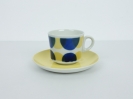 アラビアのステンシルシリーズ、茶色い花と水玉のような模様がかわいらしいカップ&ソーサーです。